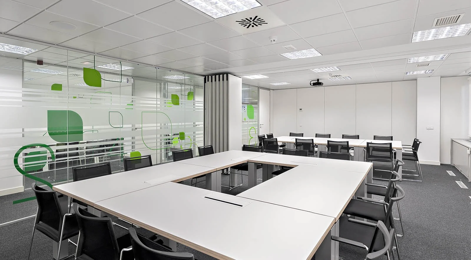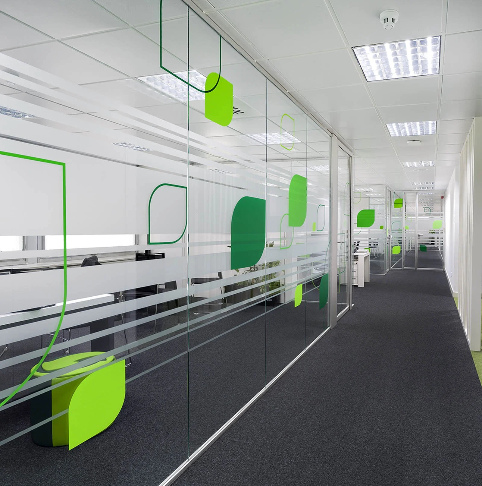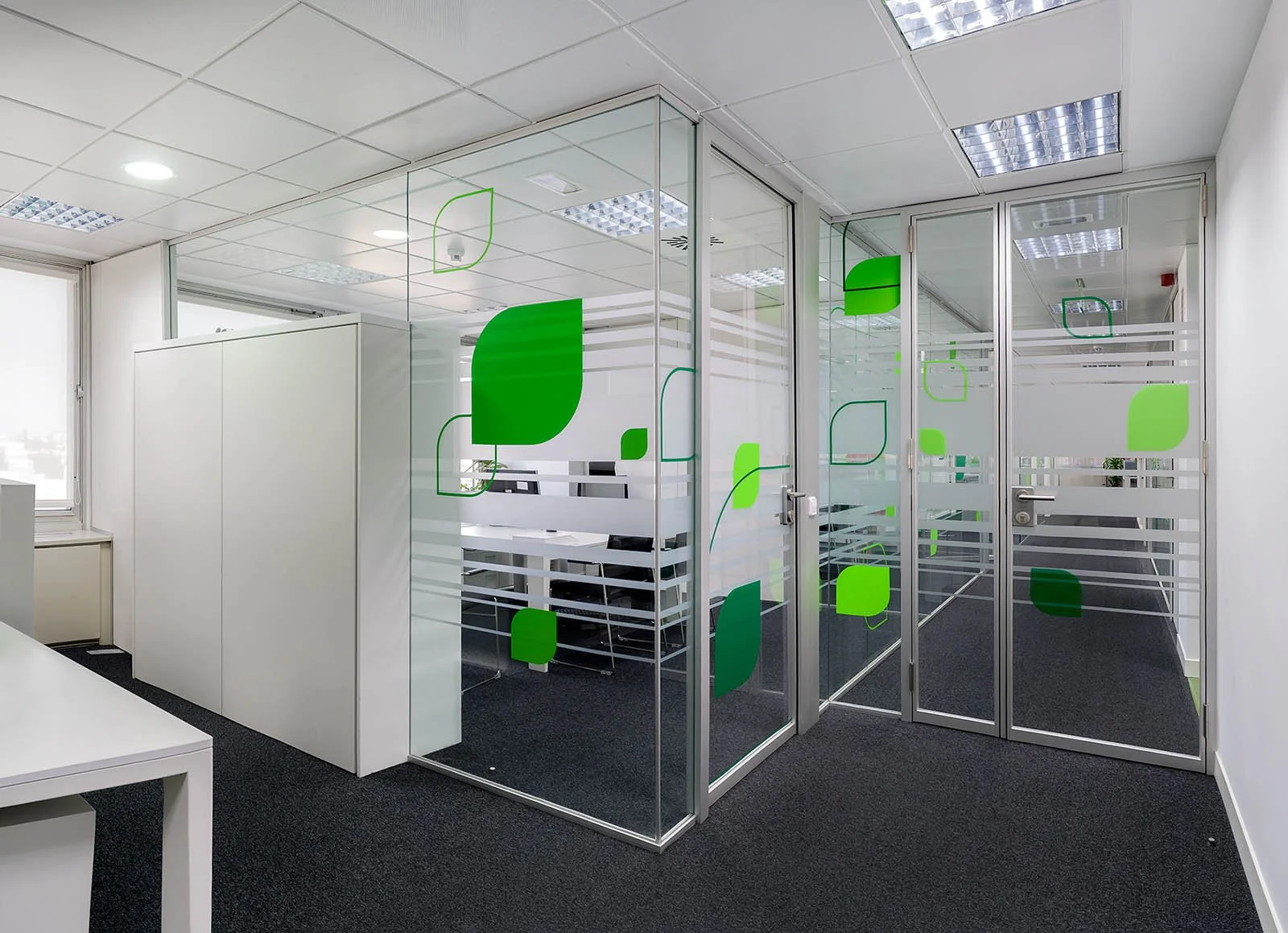 Un proyecto muy a la medida de la compañía. Instalamos divisorias con un solo vidrio R66 y tabiques armarios incorporados en el sistema. Con nuestros sistemas podemos ayudar al proyecto a conseguir la mayor puntuación leed.