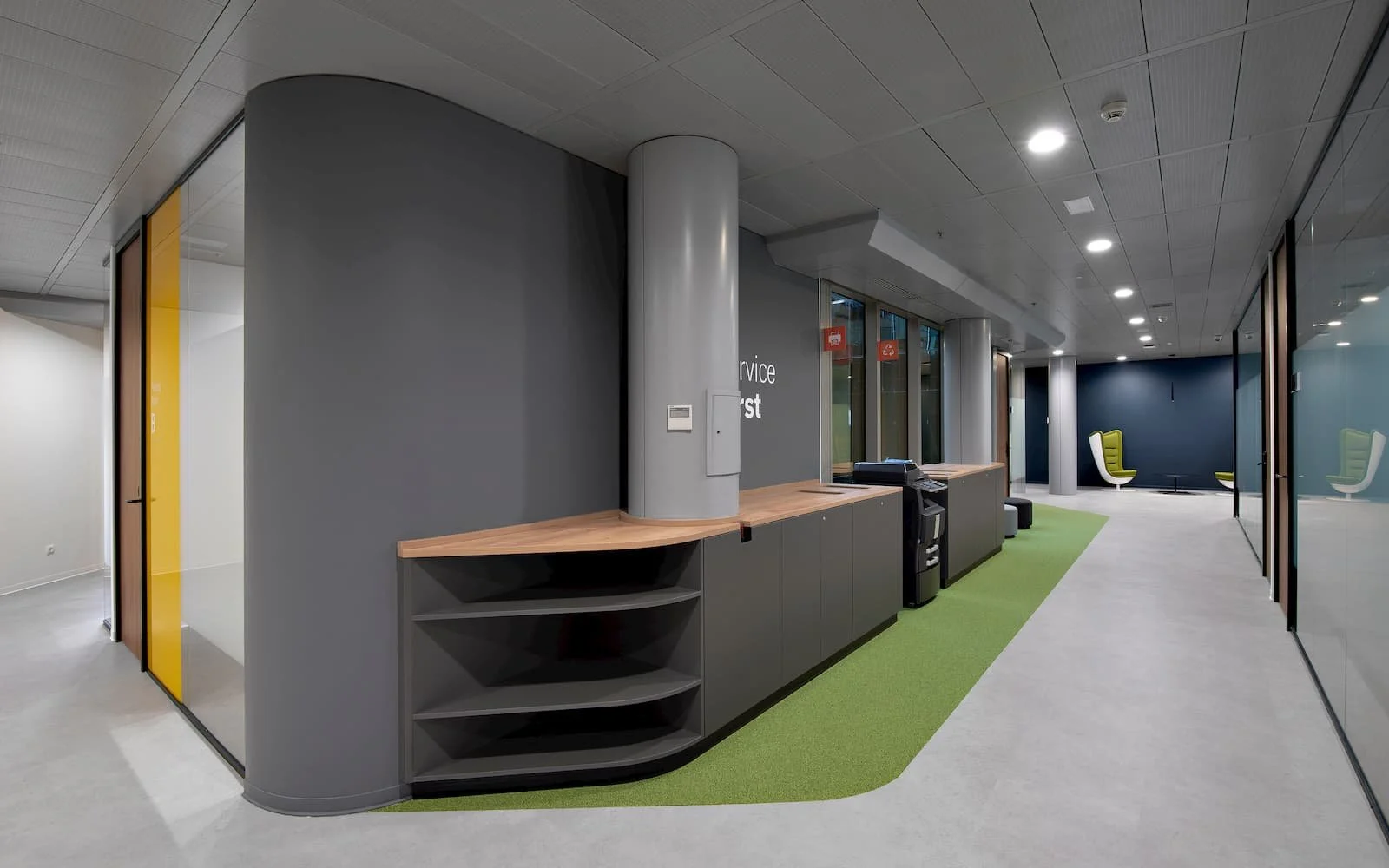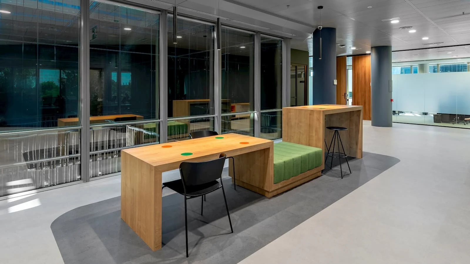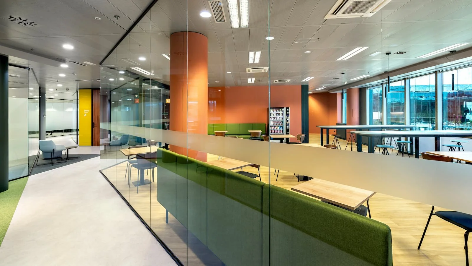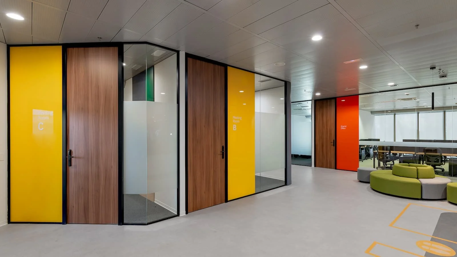 Nos hemos encargado de la división de todo el espacio con más de 850 metros cuadrados de mamparas modelo R66 con un solo vidrio, así como diversos elementos Tailor Made como offices, mostrador de recepción, mobiliario, entre otros.
